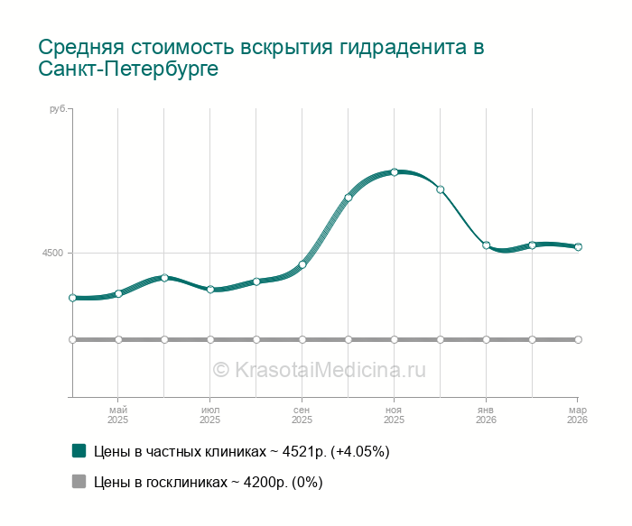 Вскрытие гидраденита – рассечение и санация гнойного инфильтрата, являющегося следствием абсцедирующего воспаления потовых желез. В качестве обезболивания используется местная инфильтрационная анестезия. Ткани над гнойником рассекают по направлению кожной складки. Края раны разводят, обеспечивая свободный отток гнойного содержимого. Эвакуацию гнойных масс проводят путем надавливания на края раны, а также используя специальную хирургическую ложку-кюретку. Рану промываю перекисью водорода, высушивают и рыхло тампонируют марлевой турундой. Сверху на операционный разрез накладывают мазевую повязку. Гидраденит может рецидивировать, поэтому более радикальным является иссечение воспаленной потовой железы.